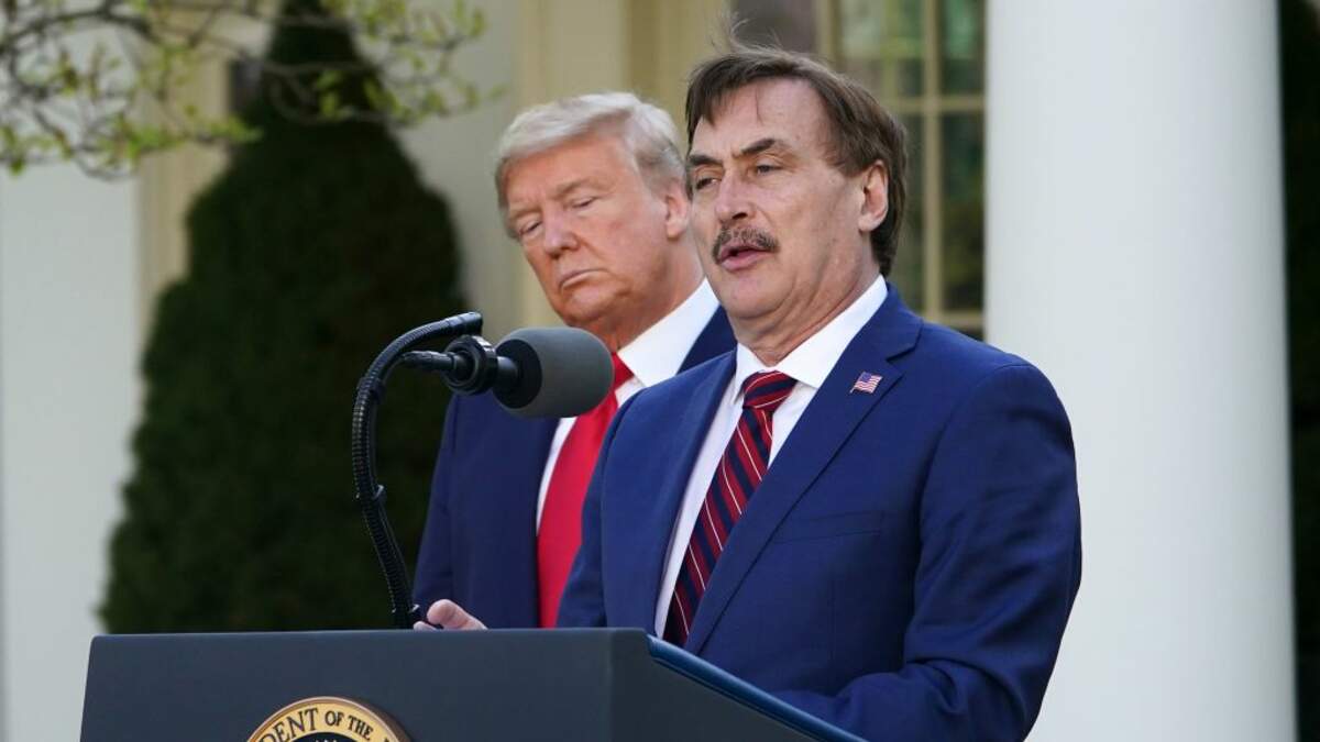 At a press briefing at the White House with President Donald Trump, Mike Lindell gave a speech announcing what his company was doing to solve mask shortages. He also talked about his religious faith and encouraged Americans to turn to God in times of crisis.