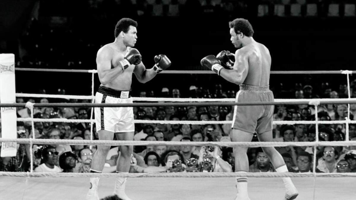 We find Muhammad Ali knocking out George Foreman in the “The Rumble in the Jungle.” The fight has been called "the greatest sporting event of the 20th century", and is famous for Ali's introduction of the rope-a-dope tactic.