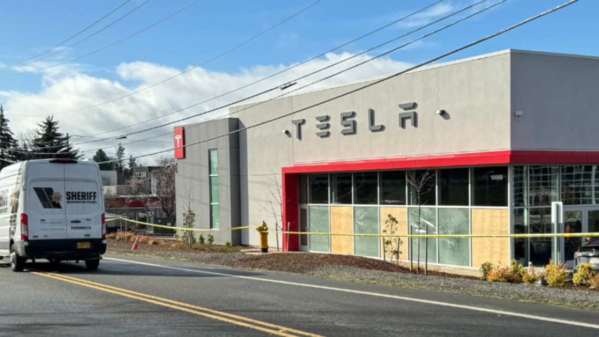 For the second time in a week, Tigard Police are investigating shots fired at a Tesla dealership.